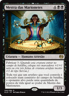 | Rules | Fabricate 3 (When this creature enters the battlefield, put three +1/+1 counters on it or create three 1/1 colorless Servo artifact creature tokens.) Whenever an artifact you control is put into a graveyard from the battlefield, target opponent loses life equal to Marionette Master's power. |