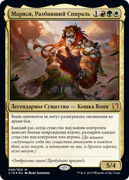 | Rules | Your opponents can't cast spells during combat. Whenever a creature you control deals combat damage to a player, goad each creature that player controls. (Until your next turn, those creatures attack each combat if able and attack a player other than you if able.) |