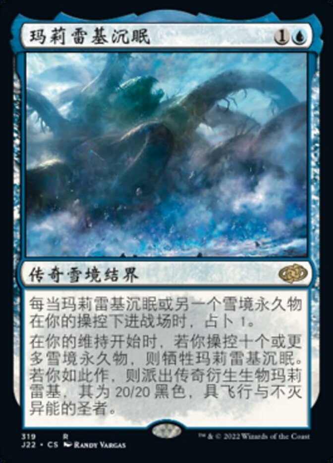 | Rules | Whenever Marit Lage's Slumber or another snow permanent enters the battlefield under your control, scry 1. At the beginning of your upkeep, if you control ten or more snow permanents, sacrifice Marit Lage's Slumber. If you do, create Marit Lage, a legendary 20/20 black Avatar creature token with flying and indestructible. |
