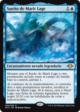 | Rules | Whenever Marit Lage's Slumber or another snow permanent enters the battlefield under your control, scry 1. At the beginning of your upkeep, if you control ten or more snow permanents, sacrifice Marit Lage's Slumber. If you do, create Marit Lage, a legendary 20/20 black Avatar creature token with flying and indestructible. |