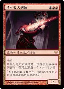 | Rules | Double strike Whenever Markov Blademaster deals combat damage to a player, put a +1/+1 counter on it. |