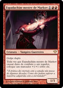 | Rules | Double strike Whenever Markov Blademaster deals combat damage to a player, put a +1/+1 counter on it. |