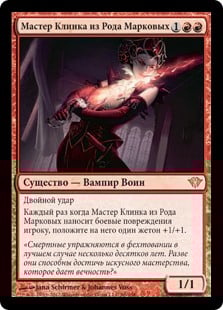 | Rules | Double strike Whenever Markov Blademaster deals combat damage to a player, put a +1/+1 counter on it. |