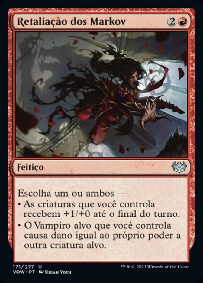 | Rules | Choose one or both — • Creatures you control get +1/+0 until end of turn. • Target Vampire you control deals damage equal to its power to another target creature. |