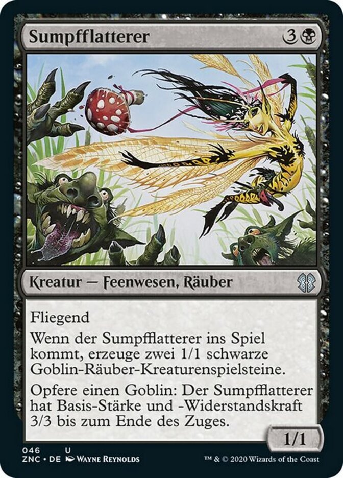 | Rules | Flying When Marsh Flitter enters the battlefield, create two 1/1 black Goblin Rogue creature tokens. Sacrifice a Goblin: Marsh Flitter has base power and toughness 3/3 until end of turn. |