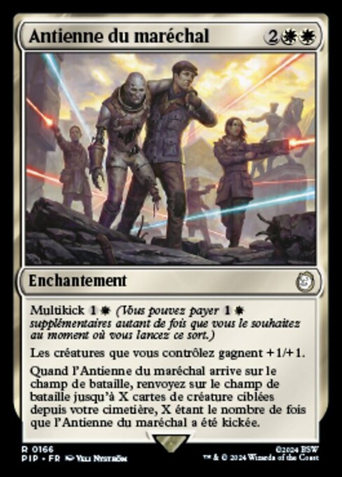 | Rules | Multikicker (You may pay an additional any number of times as you cast this spell.) Creatures you control get +1/+1. When Marshal's Anthem enters the battlefield, return up to X target creature cards from your graveyard to the battlefield, where X is the number of times Marshal's Anthem was kicked. |