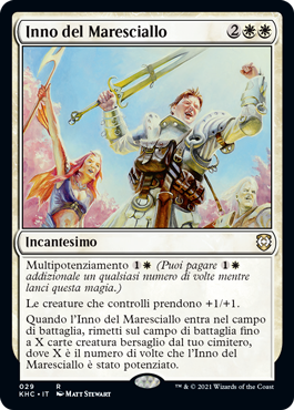 | Rules | Multikicker (You may pay an additional any number of times as you cast this spell.) Creatures you control get +1/+1. When Marshal's Anthem enters the battlefield, return up to X target creature cards from your graveyard to the battlefield, where X is the number of times Marshal's Anthem was kicked. |