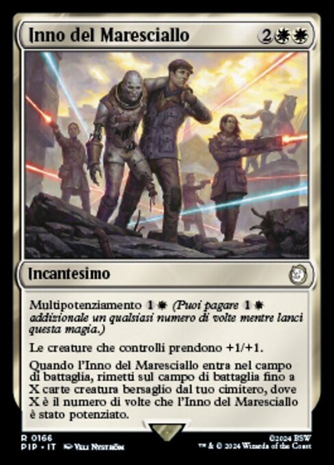 | Rules | Multikicker (You may pay an additional any number of times as you cast this spell.) Creatures you control get +1/+1. When Marshal's Anthem enters the battlefield, return up to X target creature cards from your graveyard to the battlefield, where X is the number of times Marshal's Anthem was kicked. |