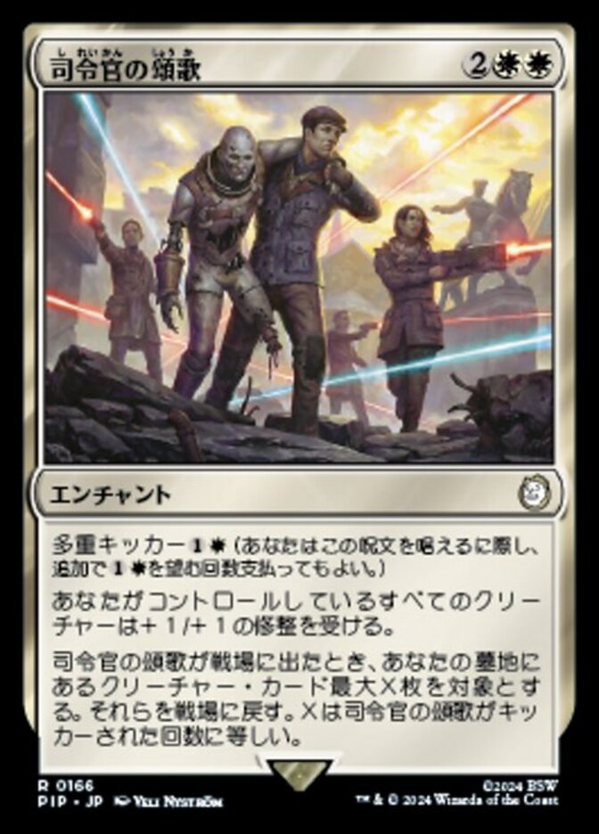 | Rules | Multikicker (You may pay an additional any number of times as you cast this spell.) Creatures you control get +1/+1. When Marshal's Anthem enters the battlefield, return up to X target creature cards from your graveyard to the battlefield, where X is the number of times Marshal's Anthem was kicked. |