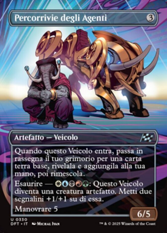| Rules | When this Vehicle enters, search your library for a basic land card, reveal it, put it into your hand, then shuffle. Exhaust — : This Vehicle becomes an artifact creature. Put two +1/+1 counters on it. (Activate each exhaust ability only once.) Crew 5 |