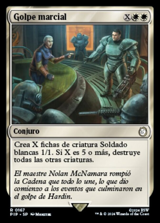 | Rules | Create X 1/1 white Soldier creature tokens. If X is 5 or more, destroy all other creatures. |