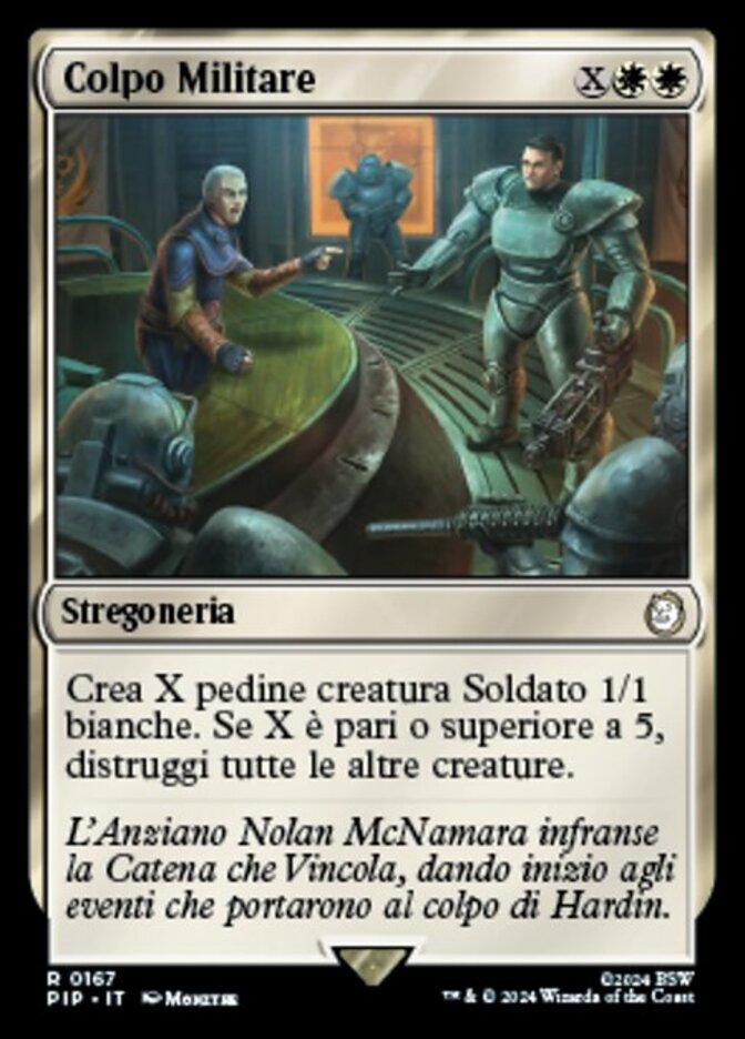 | Rules | Create X 1/1 white Soldier creature tokens. If X is 5 or more, destroy all other creatures. |