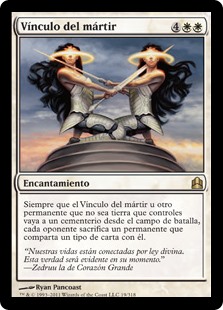 | Rules | Whenever Martyr's Bond or another nonland permanent you control is put into a graveyard from the battlefield, each opponent sacrifices a permanent that shares a card type with it. |