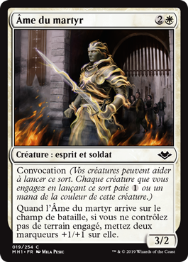 | Rules | Convoke (Your creatures can help cast this spell. Each creature you tap while casting this spell pays for or one mana of that creature's color.) When Martyr's Soul enters the battlefield, if you control no tapped lands, put two +1/+1 counters on it. |