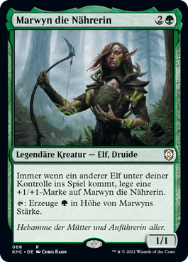 Rules Whenever another Elf enters the battlefield under your control, put a +1/+1 counter on Marwyn, the Nurturer.