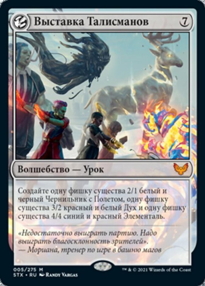 | Rules | Create a 2/1 white and black Inkling creature token with flying, a 3/2 red and white Spirit creature token, and a 4/4 blue and red Elemental creature token. |