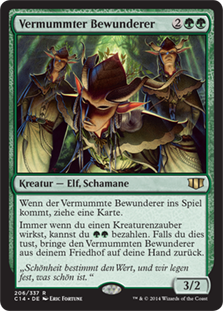 | Rules | When Masked Admirers enters the battlefield, draw a card. Whenever you cast a creature spell, you may pay . If you do, return Masked Admirers from your graveyard to your hand. |