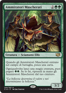 | Rules | When Masked Admirers enters the battlefield, draw a card. Whenever you cast a creature spell, you may pay . If you do, return Masked Admirers from your graveyard to your hand. |