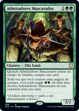 | Rules | When Masked Admirers enters the battlefield, draw a card. Whenever you cast a creature spell, you may pay . If you do, return Masked Admirers from your graveyard to your hand. |