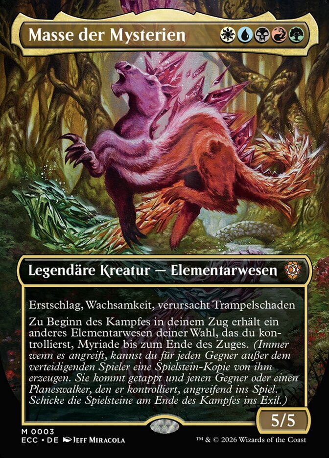 | Rules | First strike, vigilance, trample At the beginning of combat on your turn, another target Elemental you control gains myriad until end of turn. (Whenever it attacks, for each opponent other than defending player, you may create a token coру that's tapped and attacking that player or a planeswalker they control. Exile the tokens at end of combat.) |