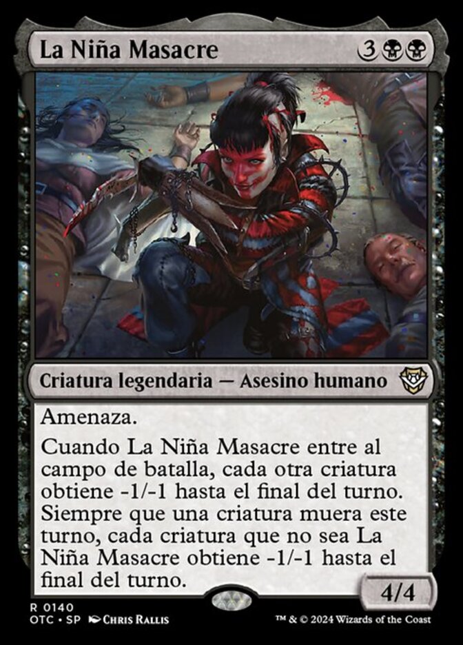 | Rules | Menace When Massacre Girl enters the battlefield, each other creature gets -1/-1 until end of turn. Whenever a creature dies this turn, each creature other than Massacre Girl gets -1/-1 until end of turn. |