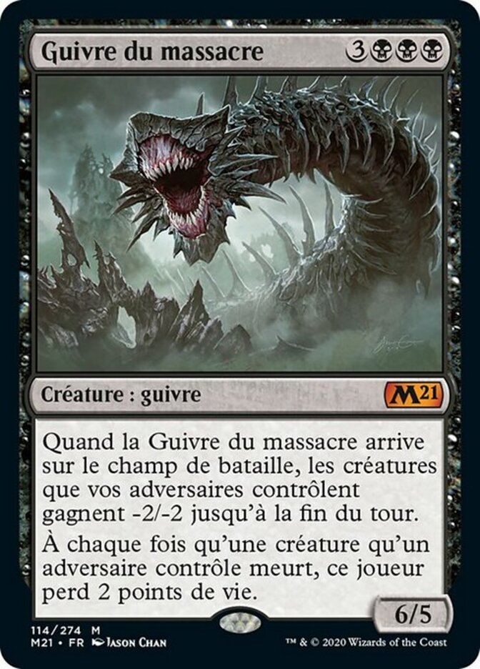 | Rules | When Massacre Wurm enters the battlefield, creatures your opponents control get -2/-2 until end of turn. Whenever a creature an opponent controls dies, that player loses 2 life. |