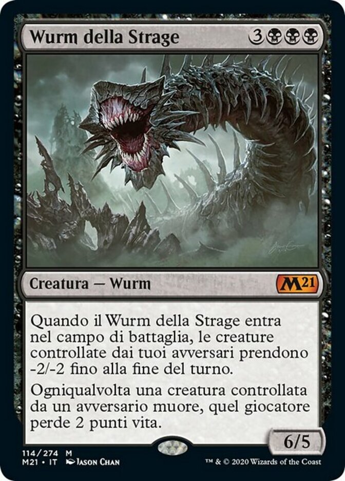 | Rules | When Massacre Wurm enters the battlefield, creatures your opponents control get -2/-2 until end of turn. Whenever a creature an opponent controls dies, that player loses 2 life. |