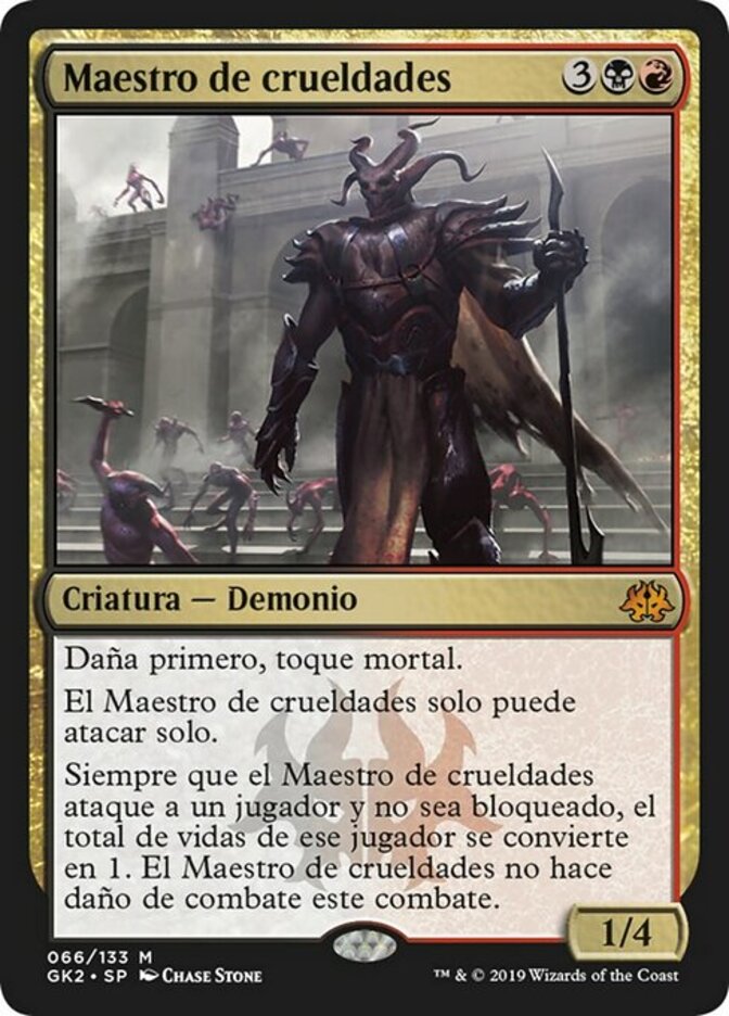 | Rules | First strike, deathtouch Master of Cruelties can only attack alone. Whenever Master of Cruelties attacks a player and isn't blocked, that player's life total becomes 1. Master of Cruelties assigns no combat damage this combat. |