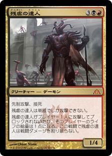 | Rules | First strike, deathtouch Master of Cruelties can only attack alone. Whenever Master of Cruelties attacks a player and isn't blocked, that player's life total becomes 1. Master of Cruelties assigns no combat damage this combat. |