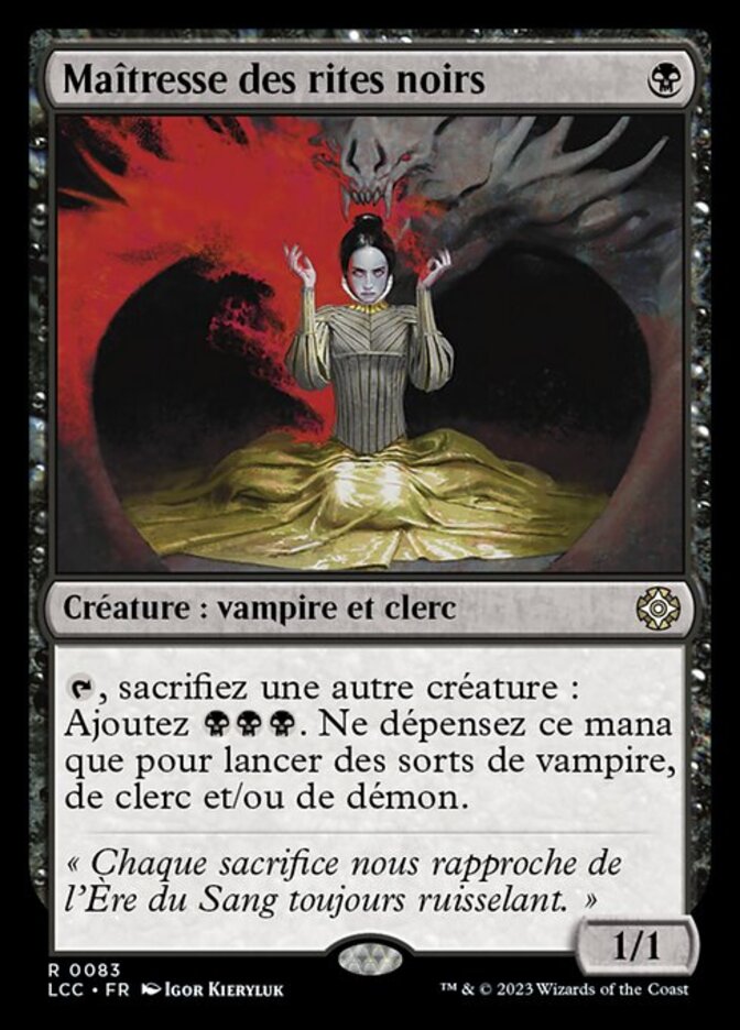 | Rules | , Sacrifice another creature: Add . Spend this mana only to cast Vampire, Cleric, and/or Demon spells. |