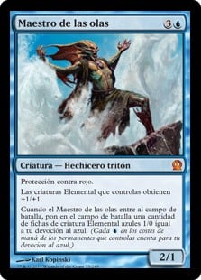 | Rules | Protection from red Elemental creatures you control get +1/+1. When Master of Waves enters the battlefield, create a number of 1/0 blue Elemental creature tokens equal to your devotion to blue. (Each in the mana costs of permanents you control counts toward your devotion to blue.) |