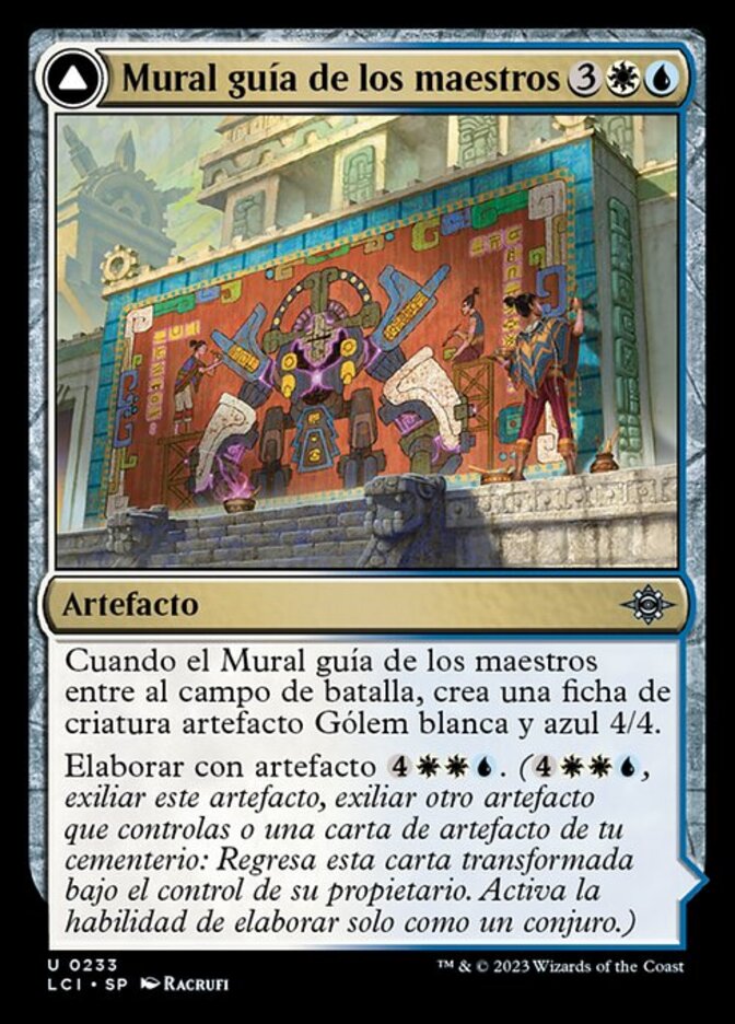 | Rules | When Master's Guide-Mural enters the battlefield, create a 4/4 white and blue Golem artifact creature token. Craft with artifact (, Exile this artifact, Exile another artifact you control or an artifact card from your graveyard: Return this card transformed under its owner's control. Craft only as a sorcery.) // : Create a 4/4 white and blue Golem artifact creature token. Activate only if Master's Manufactory or another artifact entered the battlefield under your control this turn. |