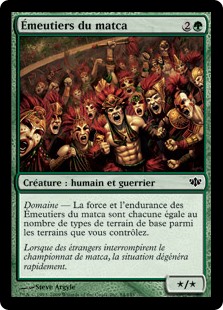 | Rules | Domain — Matca Rioters's power and toughness are each equal to the number of basic land types among lands you control. |