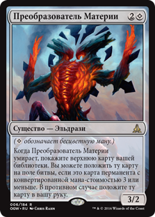 | Rules | ( represents colorless mana.) When Matter Reshaper dies, reveal the top card of your library. You may put that card onto the battlefield if it's a permanent card with mana value 3 or less. Otherwise, put that card into your hand. |