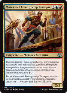 | Rules | Improvise (Your artifacts can help cast this spell. Each artifact you tap after you're done activating mana abilities pays for .) When Maverick Thopterist enters the battlefield, create two 1/1 colorless Thopter artifact creature tokens with flying. |