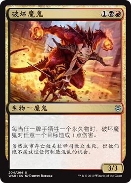| Rules | Whenever a player sacrifices a permanent, Mayhem Devil deals 1 damage to any target. |