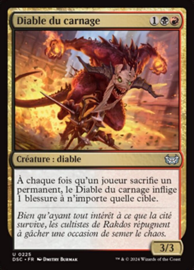 | Rules | Whenever a player sacrifices a permanent, Mayhem Devil deals 1 damage to any target. |