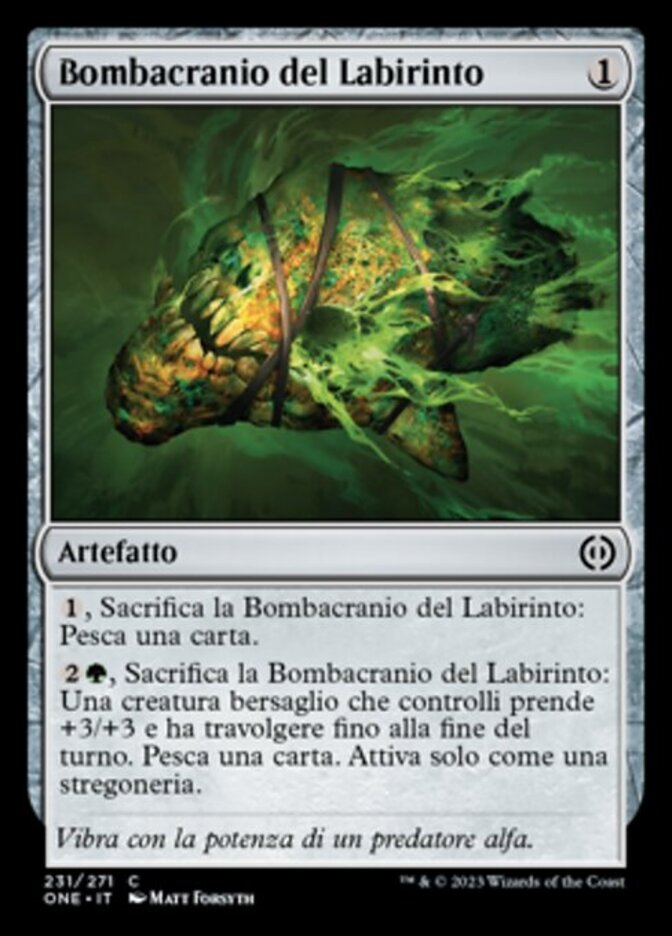 | Rules | , Sacrifice Maze Skullbomb: Draw a card. , Sacrifice Maze Skullbomb: Target creature you control gets +3/+3 and gains trample until end of turn. Draw a card. Activate only as a sorcery. |