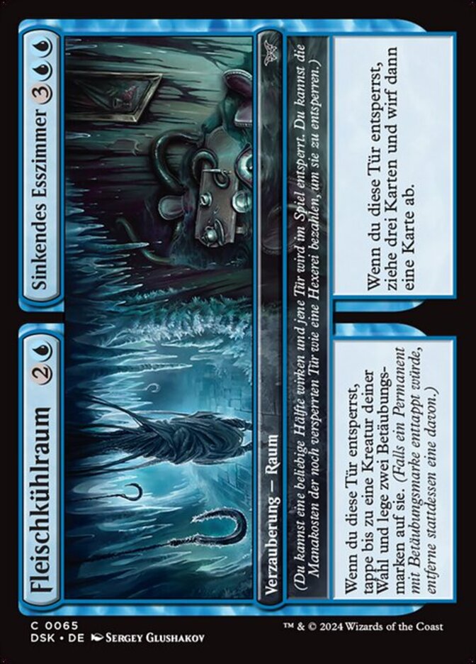 | Rules | (You may cast either half. That door unlocks on the battlefield. As a sorcery, you may pay the mana cost of a locked door to unlock it.) When you unlock this door, tap up to one target creature and put two stun counters on it. (If a permanent with a stun counter would become untapped, remove one from it instead.) // (You may cast either half. That door unlocks on the battlefield. As a sorcery, you may pay the mana cost of a locked door to unlock it.) When you unlock this door, draw three cards, then discard a card. |