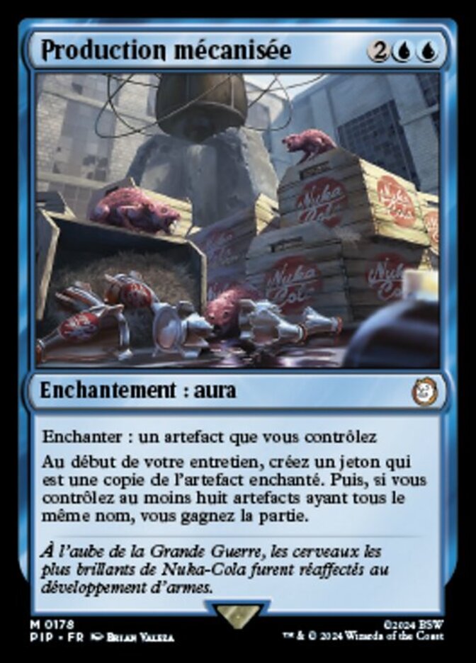 | Rules | Enchant artifact you control At the beginning of your upkeep, create a token that's a copy of enchanted artifact. Then if you control eight or more artifacts with the same name as one another, you win the game. |