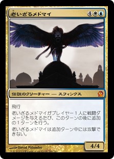 Whenever Medomai the Ageless deals combat damage to a player, take an extra turn after this one.