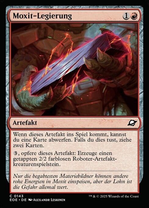 | Flavor | Only the most skilled matter shapers can imbue moxite with other raw energies, but the rewards are well worth the dangers. |