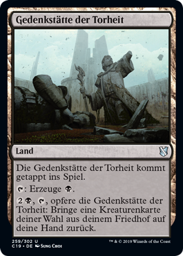 | Rules | Memorial to Folly enters the battlefield tapped. : Add . , , Sacrifice Memorial to Folly: Return target creature card from your graveyard to your hand. |