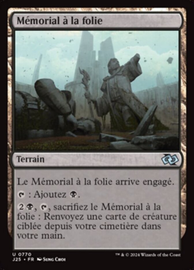 | Rules | Memorial to Folly enters the battlefield tapped. : Add . , , Sacrifice Memorial to Folly: Return target creature card from your graveyard to your hand. |