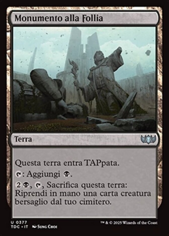 | Rules | Memorial to Folly enters the battlefield tapped. : Add . , , Sacrifice Memorial to Folly: Return target creature card from your graveyard to your hand. |
