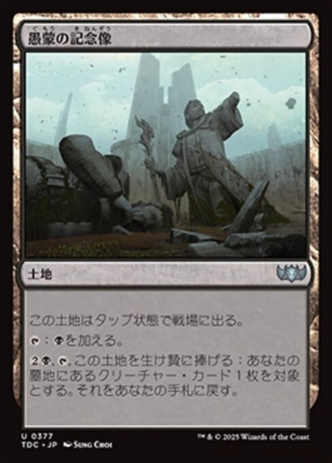 | Rules | Memorial to Folly enters the battlefield tapped. : Add . , , Sacrifice Memorial to Folly: Return target creature card from your graveyard to your hand. |