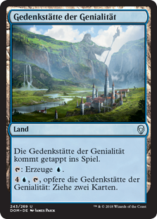 | Rules | Memorial to Genius enters the battlefield tapped. : Add . , , Sacrifice Memorial to Genius: Draw two cards. |
