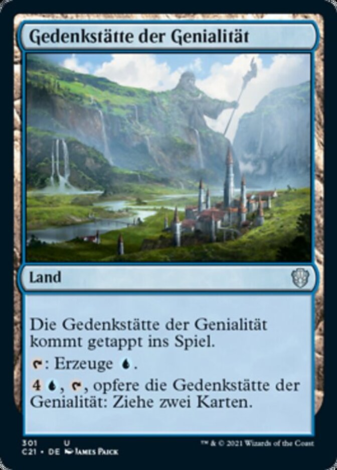 | Rules | Memorial to Genius enters the battlefield tapped. : Add . , , Sacrifice Memorial to Genius: Draw two cards. |