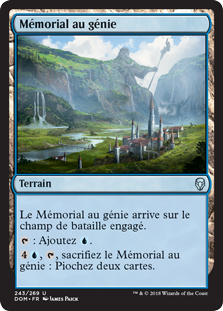 | Rules | Memorial to Genius enters the battlefield tapped. : Add . , , Sacrifice Memorial to Genius: Draw two cards. |
