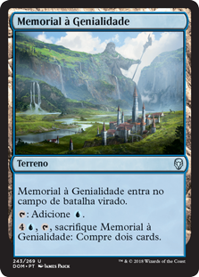 | Rules | Memorial to Genius enters the battlefield tapped. : Add . , , Sacrifice Memorial to Genius: Draw two cards. |